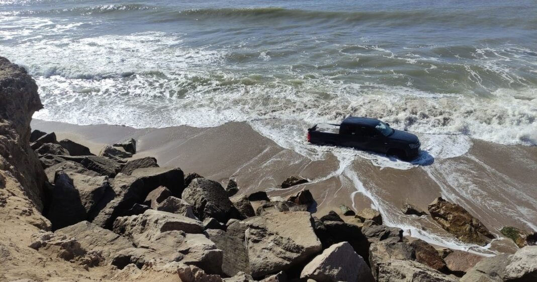 Al revisar la zona, los policías encontraron la huella de recorrida de la Amarok sobre el terraplén hacia una caída de diez metros de altura sobre la bajada de la playa.