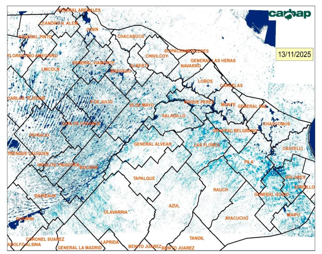 Carlos Casares, Bolívar, 9 de Julio, Pehuajó, Hipólito Yrigoyen, Saladillo, Las Flores, Bragado, 25 de Mayo, Roque Pérez, Tapalqué, Alvear, Monte, Guaminí, Laprida, Daireaux y Lincoln se encuentran entre los partidos más afectados. En Carlos Casares, sobre 130.000 hectáreas productivas, 90.000 se hallan anegadas. 9 de Julio ha estado con el 80% de sus caminos cortados. En Paulina Bourdieu de Olascoaga se encarna la tragedia compartida con tantos de sus pares en la provincia. Esta productora ha dicho a nuestros cronistas que ha estado meses sin poder entrar ni salir del campo; sin abastecimiento de víveres y debatiéndose con el interrogante de si la desidia flagrante de los gobiernos no está tipificada en el Código Penal, en la figura de “abandono de personas”.