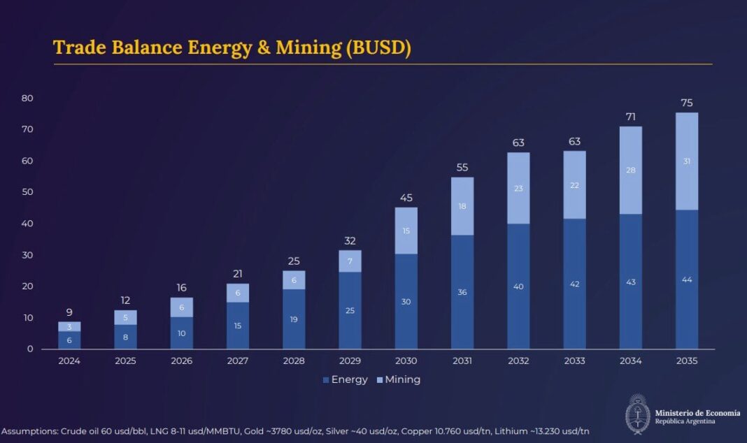 La energía y la minería son dos sectores que despiertan entusiasmo tanto en el Gobierno como en el sector privado por su potencial como generadores de divisas en los próximos años. Según proyecciones del Ministerio de Economía, en apenas cuatro años ambos sectores, en conjunto, aportarán una cantidad de dólares equivalente a la del agro, cuyo superávit comercial se estima en torno a los US$32.000 millones anuales.